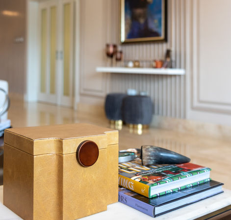El Área Social de este apartamento es el centro que comunica sala , comedor, estudio, cocina y terraza. La sala esta compuesta por dos sofás en tonos de crema acompañados por un juego de butacas en color verde y composición de mesas en madera y espejo. Un dato curioso es que nuestros clientes pidieron abanicos en todas las áreas incluyendo en la sala! Cosa que generalmente no hacemos pero es muy importante satisfacer las necesidades de quien va a utilizar el espacio siguiendo cierto criterio de estética y diseño para lograr un ambiente agradable y en armonía para que estén todos a gusto. Techamos con una estructura en Hierro y Madera donde se genera un agradable espacio de sala exterior que se integra al interior del apartamento y se comunica con el área de BBQ y jacuzzi.