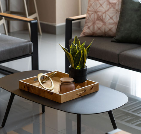 En este proyecto ambientamos y habilitamos el área social de esta torre que se encuentra ubicada en el piso 10 de la torre y cuenta con un espacio interior y una terraza destechada. Nos enfocamos en integrar revestimientos de fácil mantenimiento y que resistan para facilidad de sus usuarios. La pared focal cuenta con una composición de diferentes texturas en tablillas de madera, integramos plafones flotantes para complementar la iluminación junto con luminarias colgantes en el bar y área de sala. Paneles de screen para filtrar el sol y una trampa visual en madera brindan un efecto de privacidad al entrar desde los ascensores.